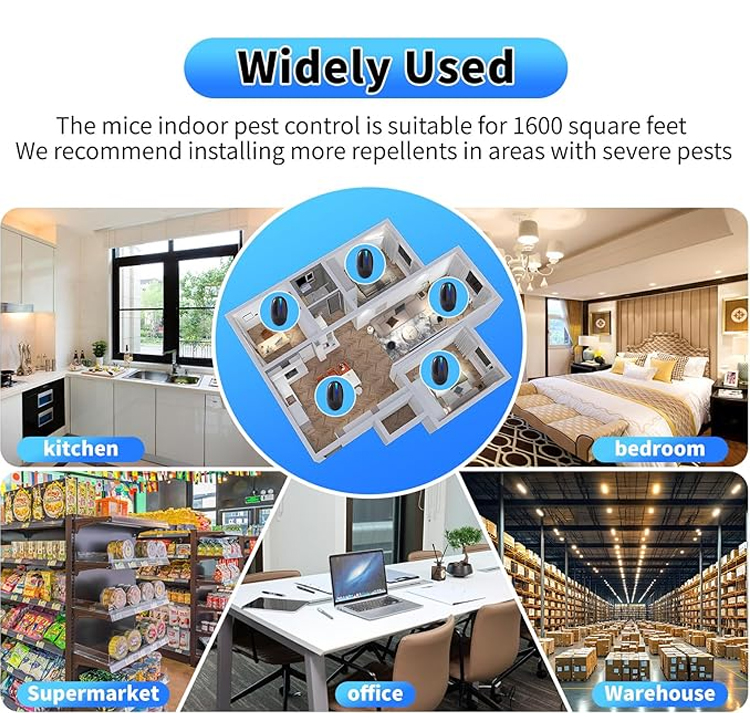 🤫 Silent & Odorless: Works silently to humans and larger pets (cats/dogs). No chemical smells, no noisy traps—just a peaceful, pest-free home. 🏡